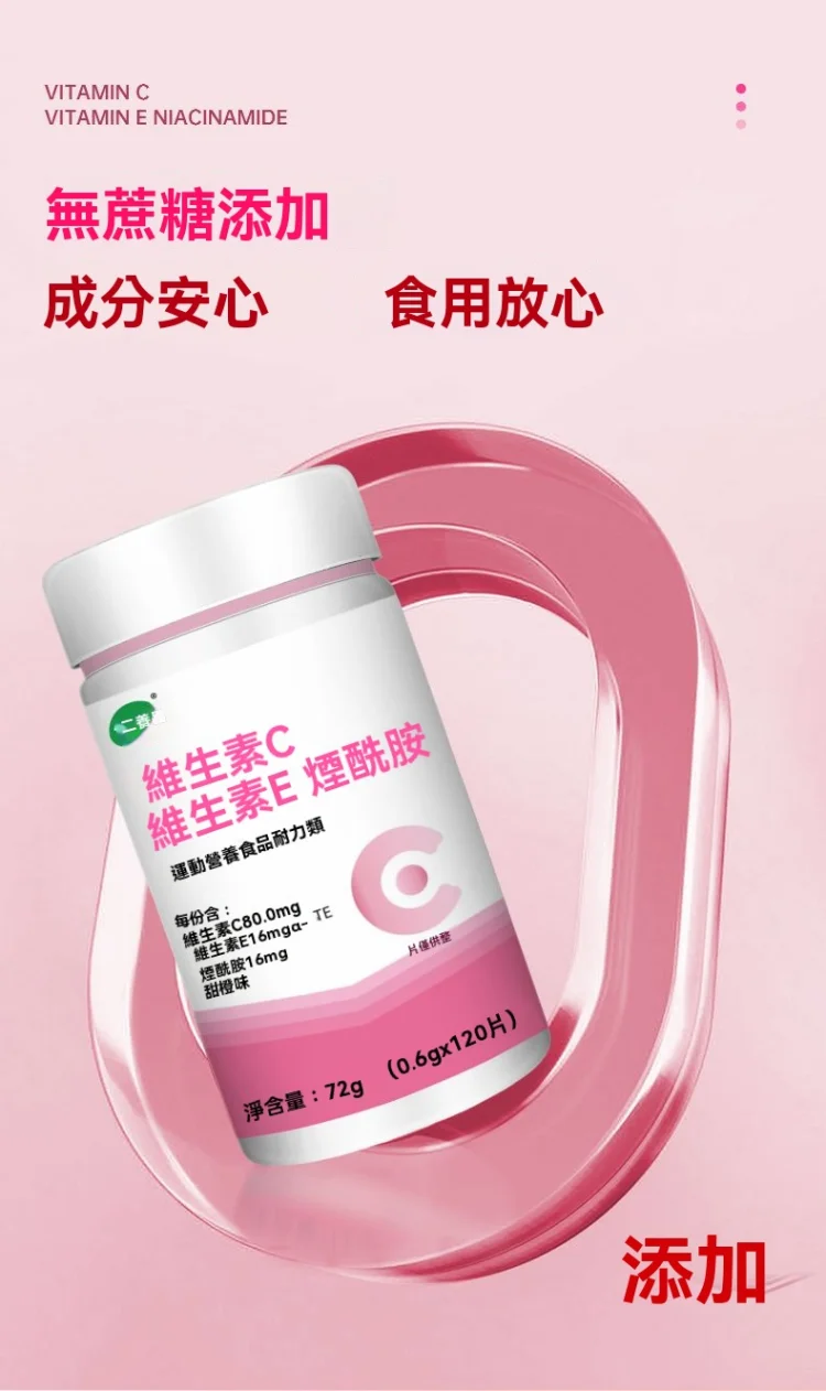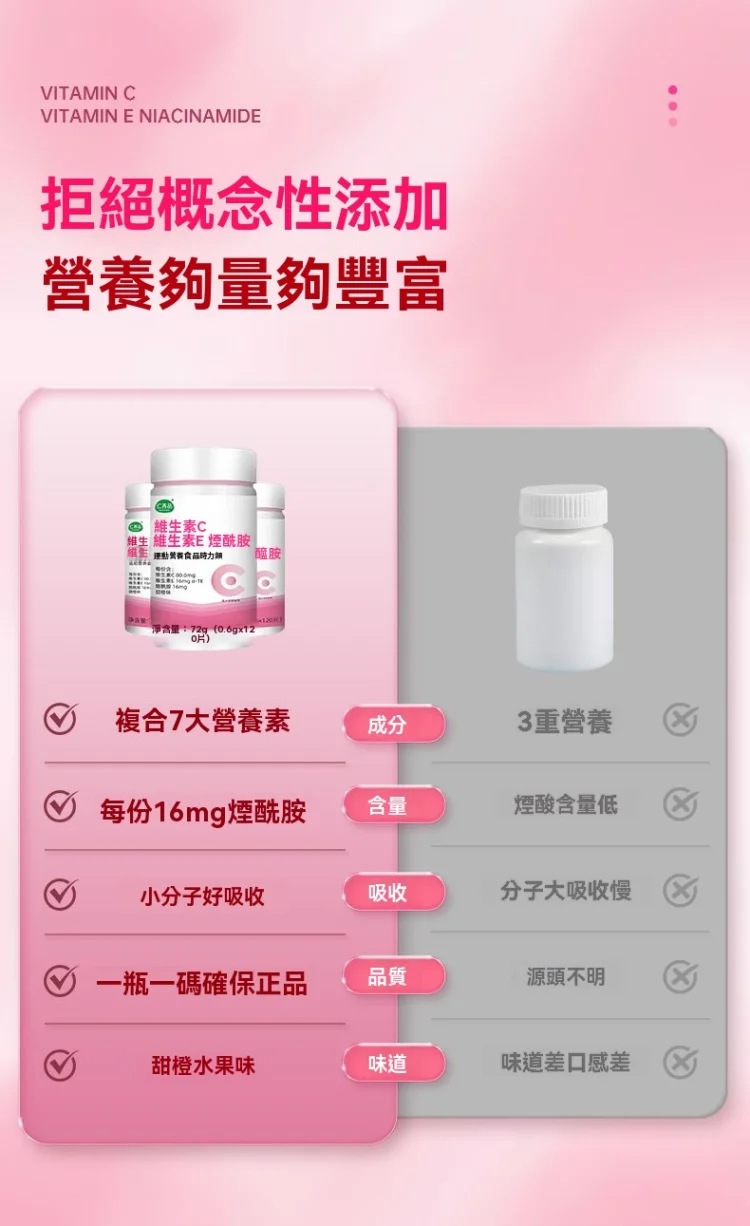 【官方正品】維他命C維他命E煙醯胺煙酸高含量好吸收【VC煙酰胺維生素咀嚼片】男生逆襲變帥的秘訣,吃完一組後你真的會感謝之前的自己做的這個決定!